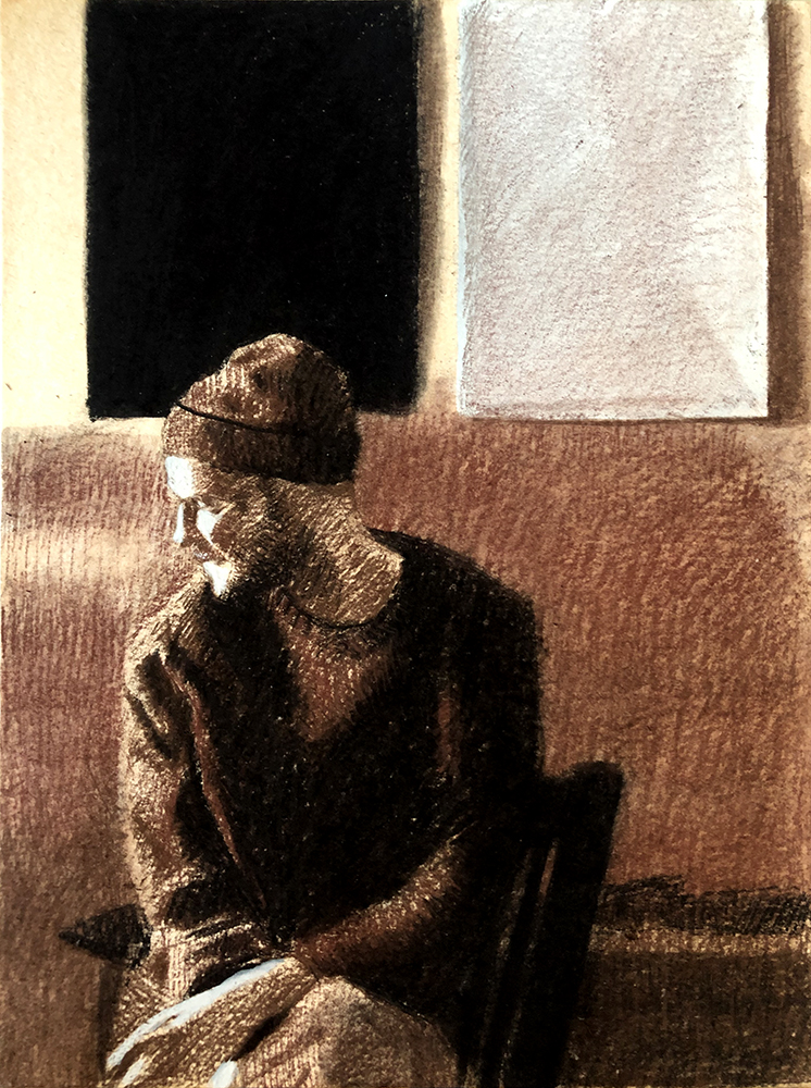 Untitled, 2019 Sepia conte and compressed charcoal on watercolour paper 40 x 30 cm